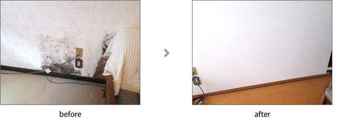 壁紙のカビがひどい、カビ無いようにして壁紙を張替てほしい。